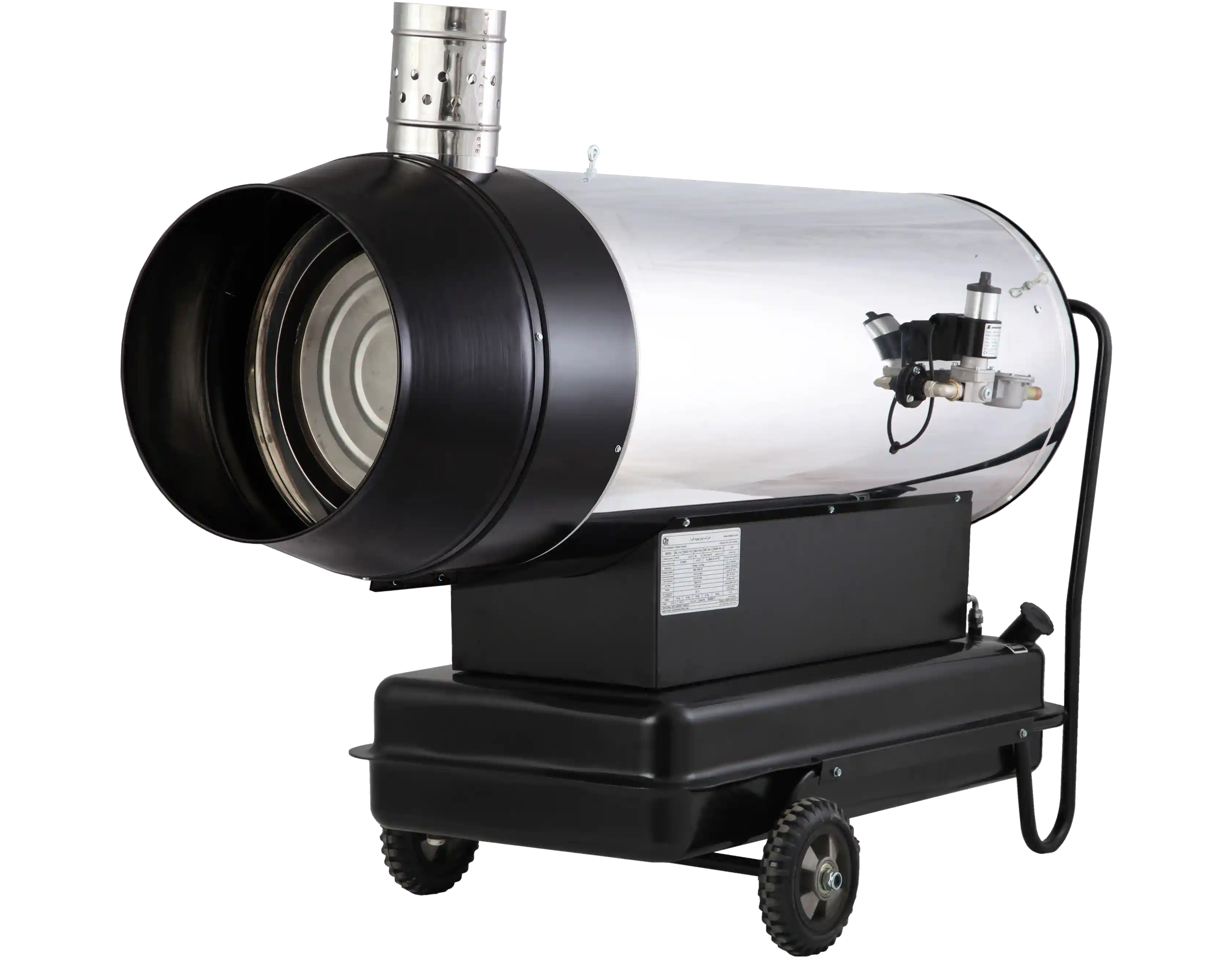 جت هیتر دوموتوره گازوئیلی دودکش دار باکدار البرز مدل 2ELB-120 ، از سری دستگاههایی است که علاوه بر قابلیت دوموتوره بودن، مجهز به دودکش نیز میباشد.