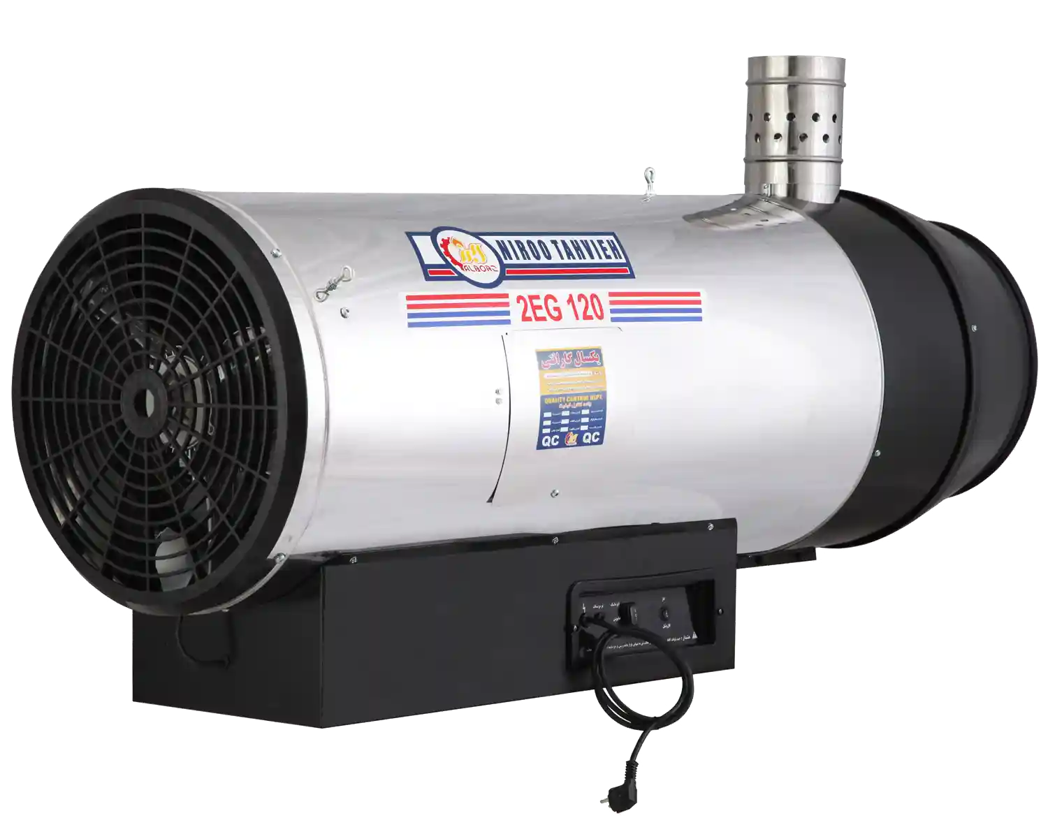 جت هیتر دوموتوره گازی دودکش دار البرز مدل 2EG-120 ،از سری دستگاههایی است که علاوه بر قابلیت دوموتوره بودن، مجهز به دودکش نیز میباشد.